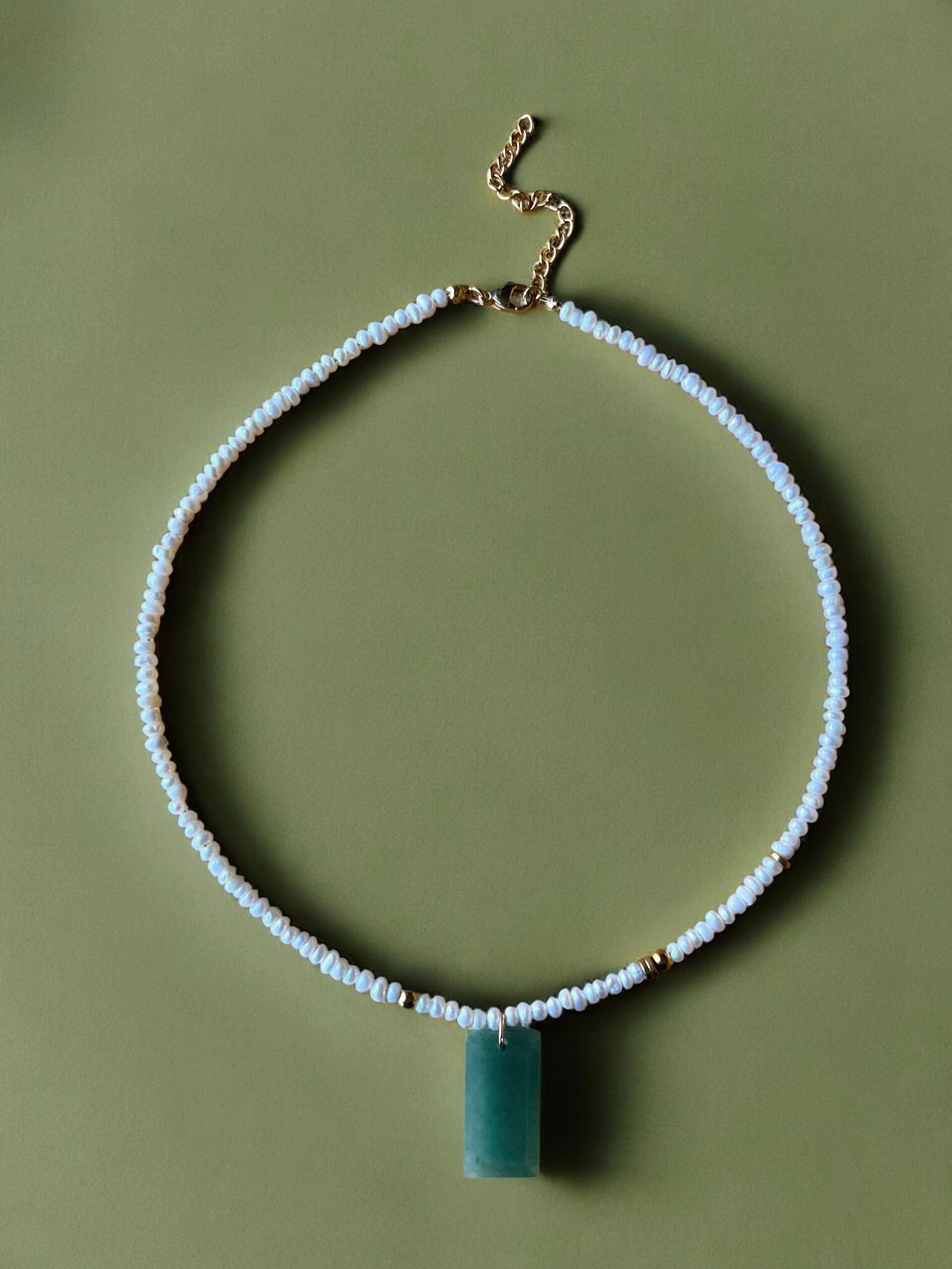 Matériaux : perles d'eau douce & pendentif en aventurine verte